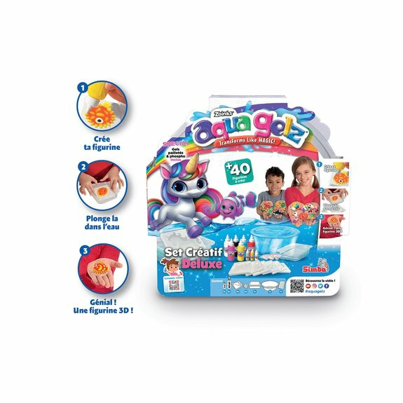 Ce coffret innovant permet de créer facilement des personnages en relief grâce à un procédé simple : il suffit de remplir les moules avec les gels, puis de les plonger dans l’eau additionnée d’un additif. En quelques secondes, les motifs plats prennent vie en sculptures 3D éclatantes. Les enfants peuvent mélanger les couleurs classiques, pailletées ou phosphorescentes pour donner vie à leurs créations, qu’ils pourront ensuite manipuler et exposer dans l’eau.