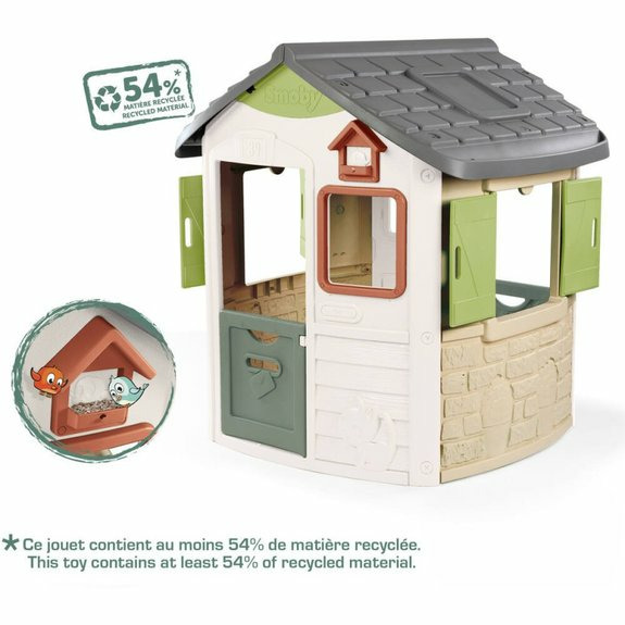 Conçue en France, dans le Jura, cette maison est fabriquée à partir de 54 % de matériaux recyclés. Elle mesure environ [dimensions non fournies], est traitée anti-UV pour une tenue optimale des couleurs, et comprend 2 portillons, 2 volets battants, une boîte aux lettres et une mangeoire à oiseaux. De nombreux accessoires compatibles permettent de la personnaliser selon les envies.
