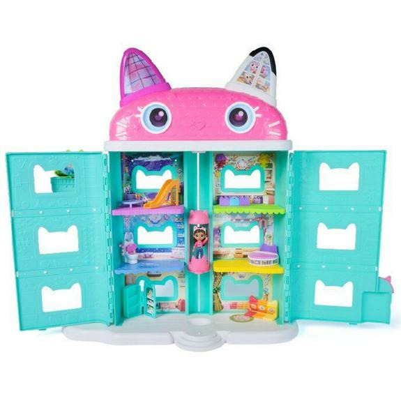 Fabriquée par Spin Master, cette maison mesure plus de 60 cm de hauteur. Elle comprend 1 figurine de Gabby, 1 figurine de chat, 11 éléments de jeu dont 8 meubles, 2 boîtes surprises et divers accessoires de décor. L’ascenseur intégré permet de déplacer les personnages entre les étages. Compatible avec les autres figurines et accessoires Gabby (vendus séparément). Application gratuite à télécharger via QR code inclus.