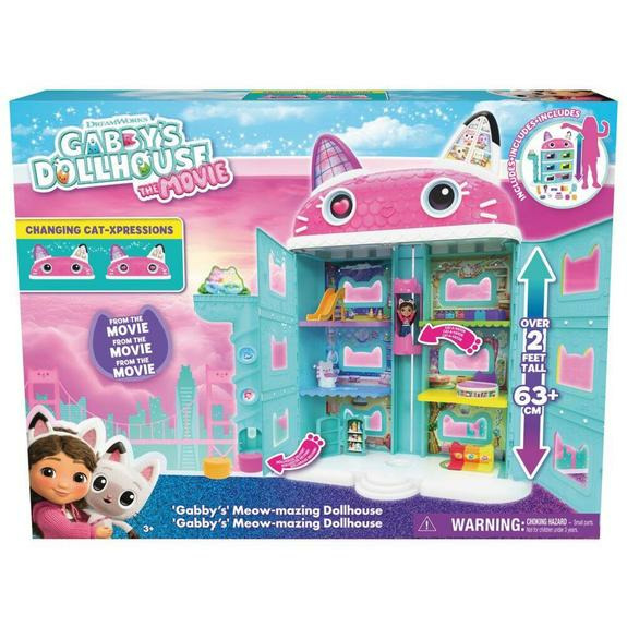 Cette maison de poupée géante de plus de 60 cm de haut invite à découvrir chaque pièce avec Gabby et ses amis chats. Composée de 11 éléments de jeu, dont 8 meubles, 2 boîtes surprises et de nombreux accessoires, elle permet de recréer les scènes magiques du film. L’ascenseur intégré ajoute une touche ludique et interactive, tandis que la figurine de Gabby et son chat complètent ce décor vivant. Compatible avec les autres univers et figurines Gabby, elle s’enrichit grâce à une application gratuite accessible via QR code, prolongeant ainsi le plaisir du jeu.