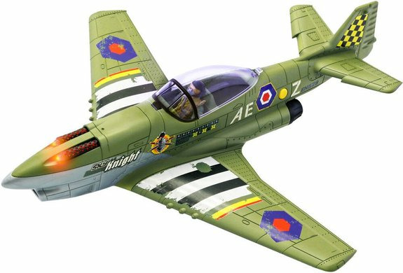 Avec ses 50,5 cm de long et une envergure de 45,7 cm, cet avion militaire séduit par son réalisme et ses détails soignés. Activez les canons pour voir les effets lumineux et entendre les sons authentiques qui donnent vie à chaque bataille. La figurine articulée de 10 cm, dotée de 14 points d’articulation, permet de créer des scénarios variés, tandis que le cockpit accueille une seconde figurine (non fournie) pour enrichir le jeu. Les trains d’atterrissage repliables ajoutent une touche de réalisme supplémentaire, et la feuille d’autocollants offre la possibilité de personnaliser l’appareil selon vos envies.