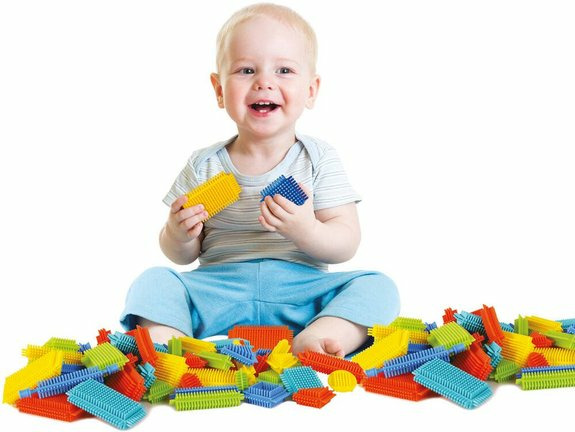 Le coffret comprend 75 pièces en plastique léger, aux formes variées et aux couleurs vives, faciles à manipuler pour les petites mains. Adapté aux enfants dès 12 mois, il respecte les normes de sécurité en vigueur.