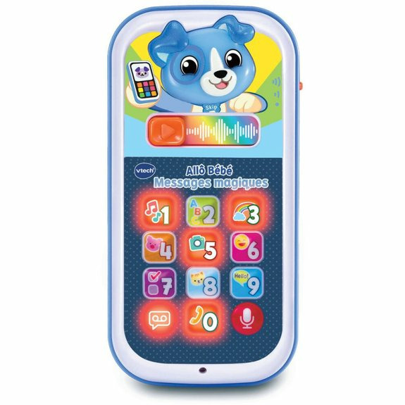 Ce téléphone à l’effigie de Skip, le petit chien, invite bébé à découvrir chiffres, alphabet et couleurs à travers 10 touches lumineuses. En plus d’imiter les grands, bébé s’initie au jeu de rôle et développe son langage avec des phrases amusantes. La fonction d’enregistrement permet aux proches de laisser des messages vocaux que bébé peut réécouter, transformés par des effets sonores rigolos. Le visage lumineux de Skip accompagne chaque interaction pour capter l’attention de l’enfant.