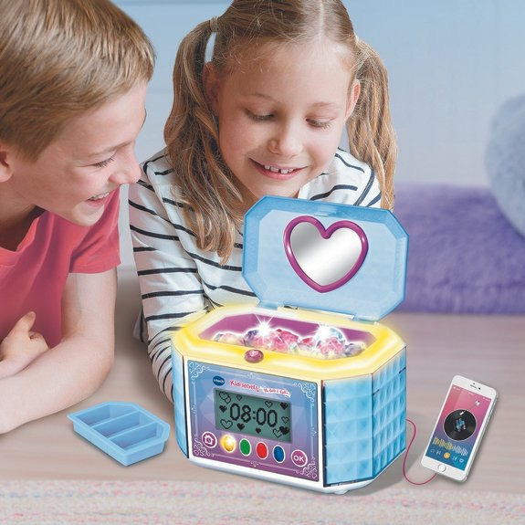 Cette boîte à bijoux signée VTech allie robustesse et charme avec sa teinte bleue apaisante. Conçue pour les jeunes passionnés de bijoux, elle offre un espace sécurisé où ranger colliers, bracelets et autres accessoires, tout en stimulant l’imagination grâce à son univers ludique. Son format compact s’intègre facilement dans une chambre ou un coin dédié aux loisirs créatifs.