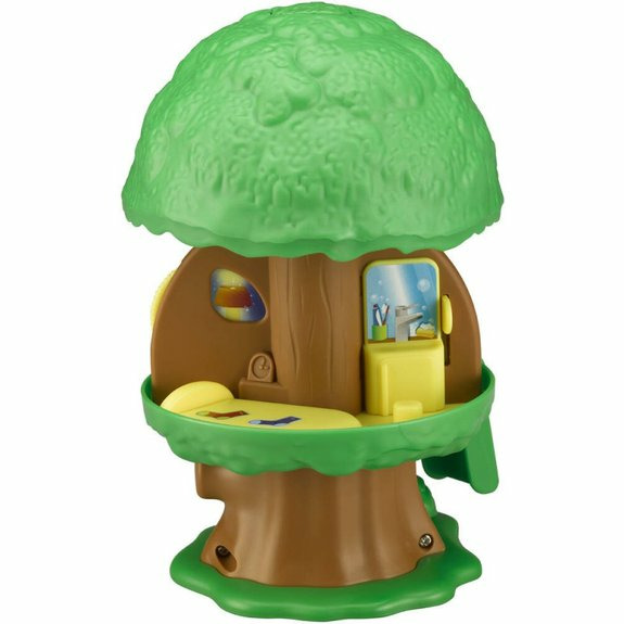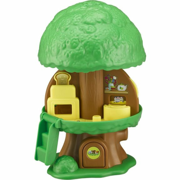 Réponse. L’arbre s’ouvre et se referme, dispose d’un ascenseur à manivelle, d’un buisson secret, d’une voiture et de nombreux accessoires pour jouer et imaginer des histoires.