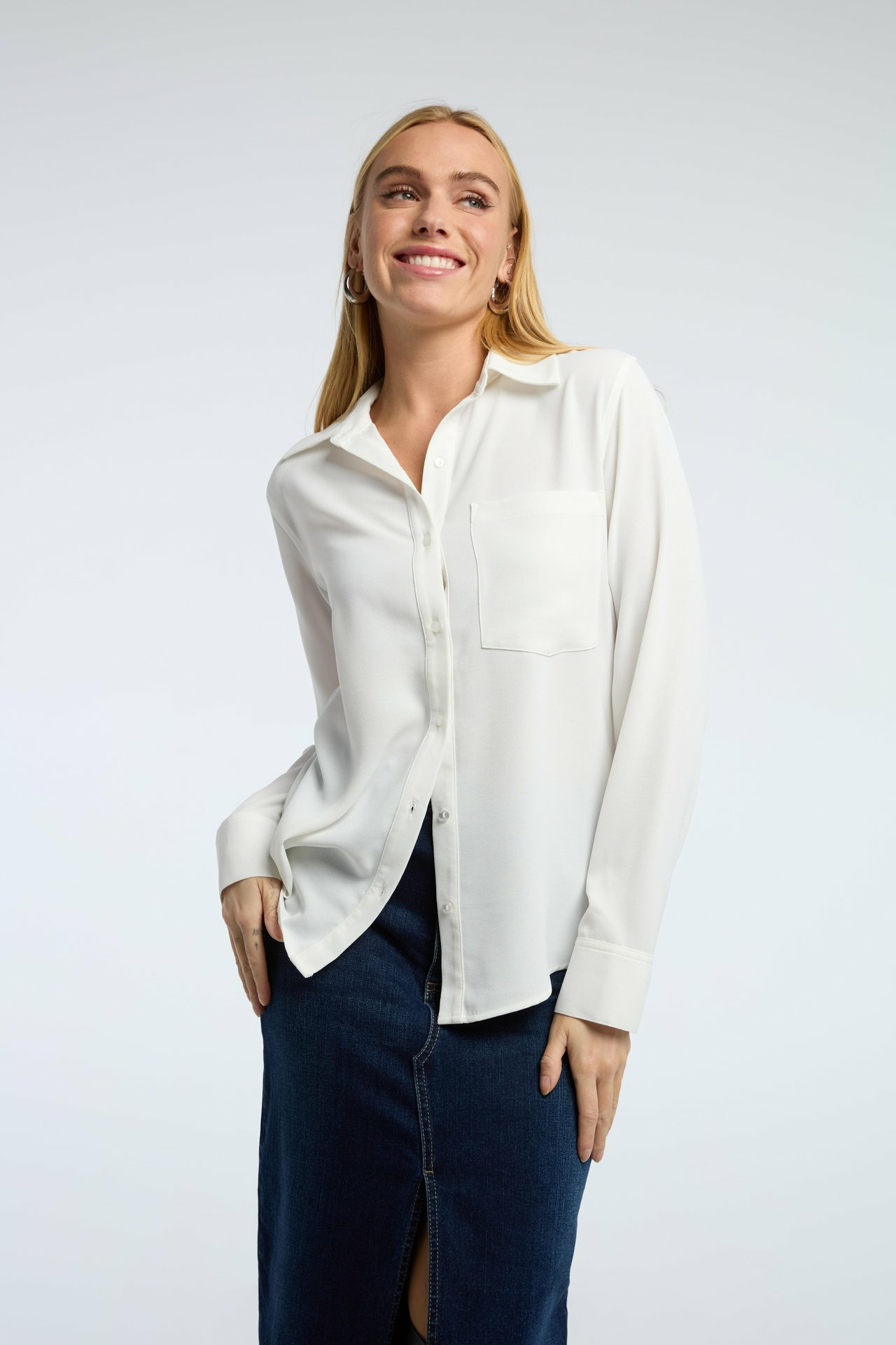 Profitez d’une pièce versatile qui valorise votre allure sans effort, tout en garantissant un confort optimal. Cette blouse basic vous accompagne au quotidien, en apportant une touche de modernité discrète et élégante.