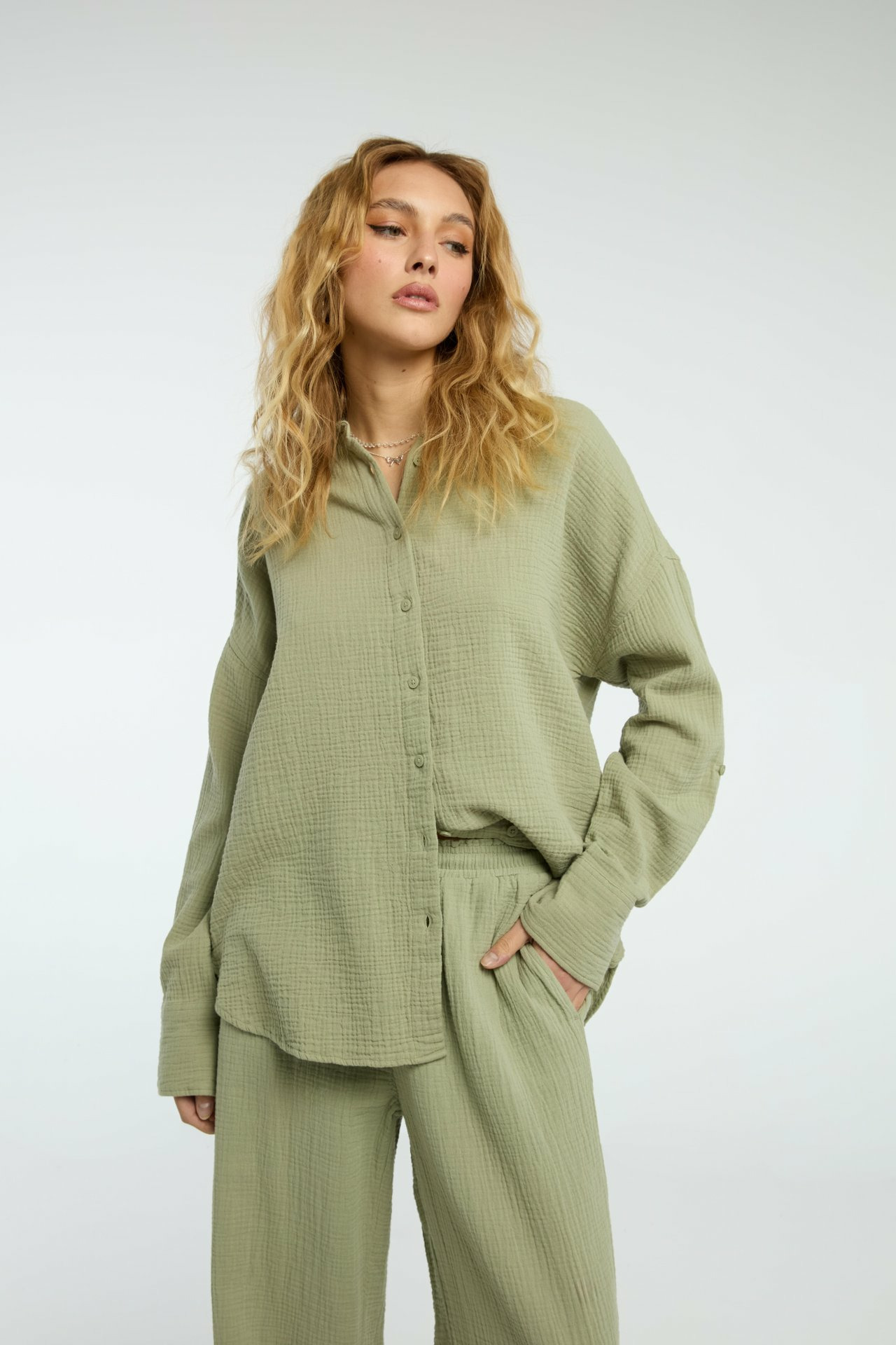 Confectionné pour allier confort et modernité, ce chemisier se distingue par sa coupe fluide et ses finitions soignées. Sa silhouette légère s’adapte parfaitement à toutes les occasions, du bureau à une sortie entre amis, en apportant une touche de sophistication discrète. Son design épuré met en valeur votre allure sans effort.