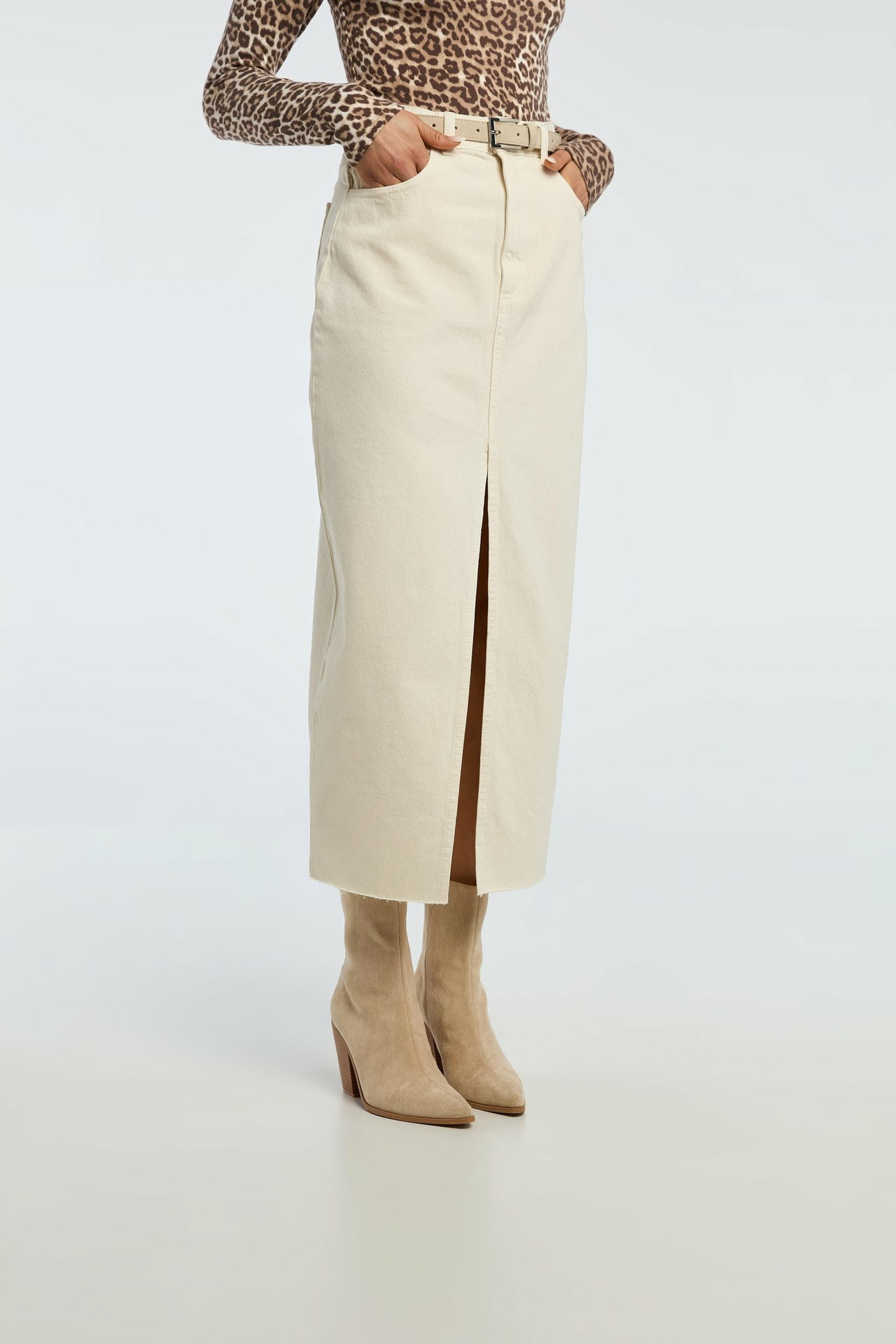 Fabriquée en denim 100 % coton, cette jupe dispose d’une fermeture zippée discrète sur le côté et de poches fonctionnelles. Sa taille mi-haute assure un maintien parfait et un look soigné.