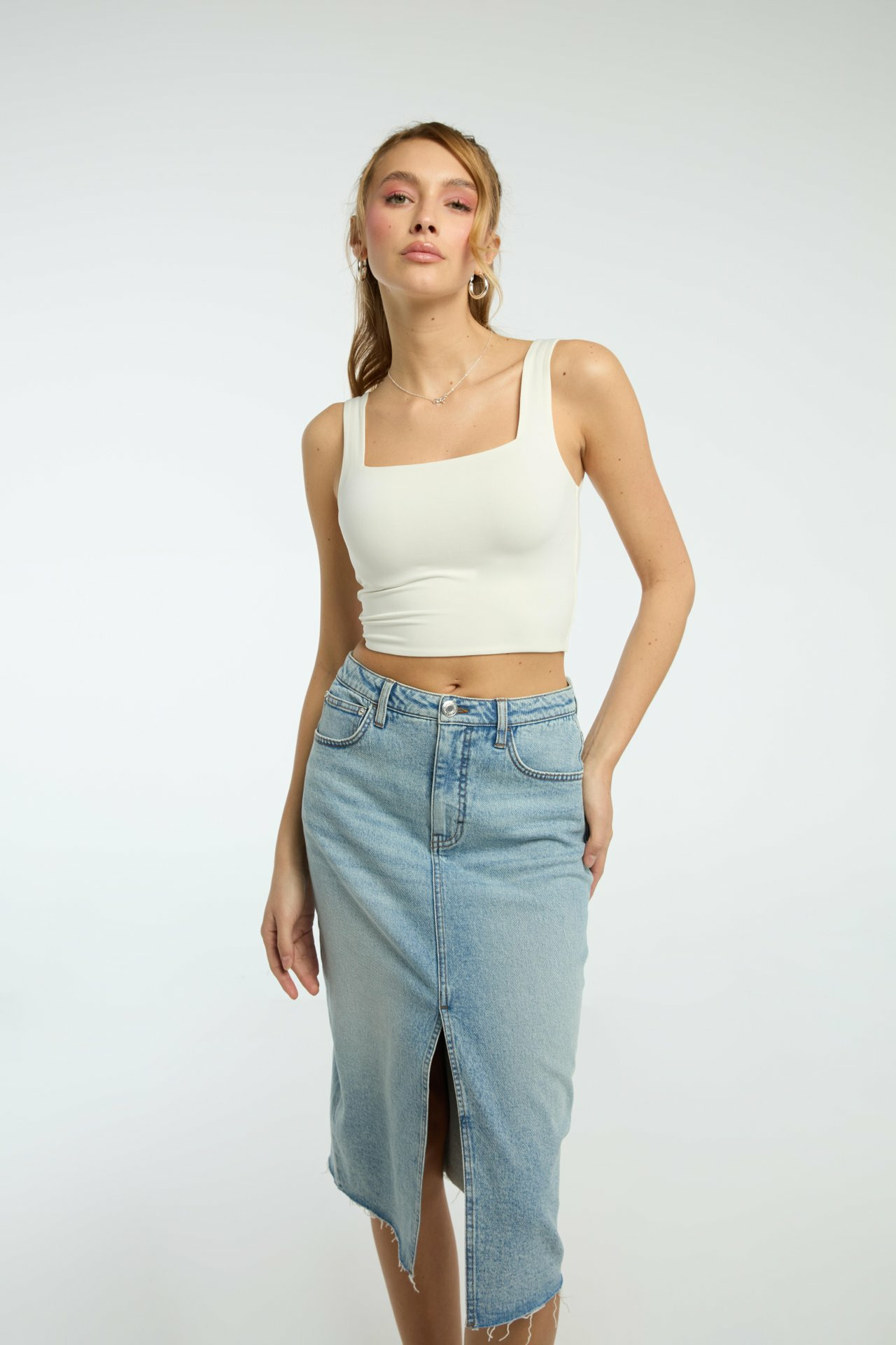 Conçue pour sublimer la silhouette, cette jupe midi en jeans offre une allure décontractée et élégante à la fois. Sa matière denim de qualité assure une tenue impeccable tout au long de la journée, tandis que sa longueur midi apporte une touche sophistiquée sans sacrifier la liberté de mouvement. Polyvalente, elle se marie aussi bien avec un t-shirt basique qu’avec une blouse raffinée.