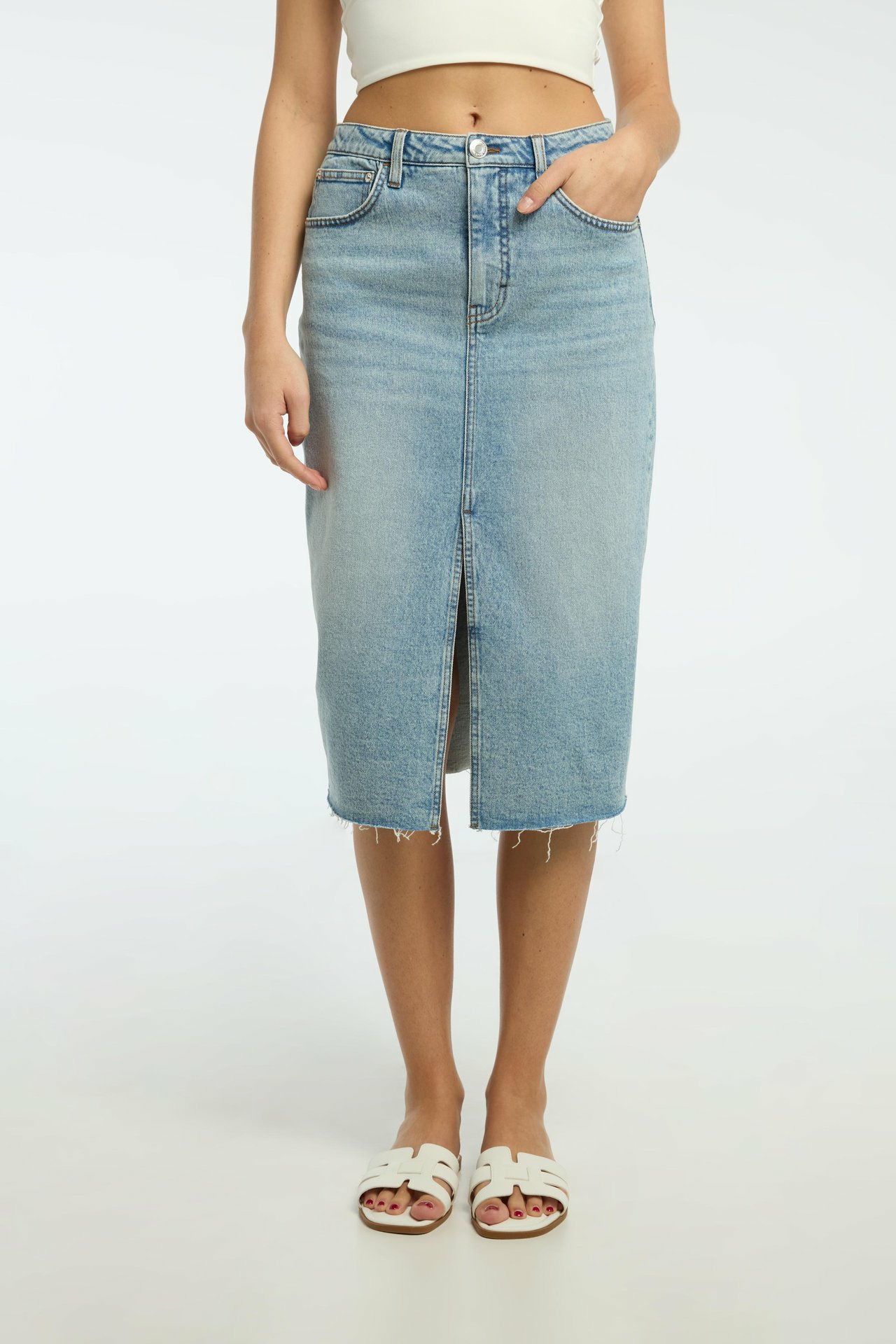 Fabriquée en denim robuste, cette jupe midi présente une fermeture zippée discrète et des poches fonctionnelles. Sa taille mi-haute assure un maintien optimal et un confort durable. Disponible en plusieurs tailles pour s’adapter à toutes les morphologies.