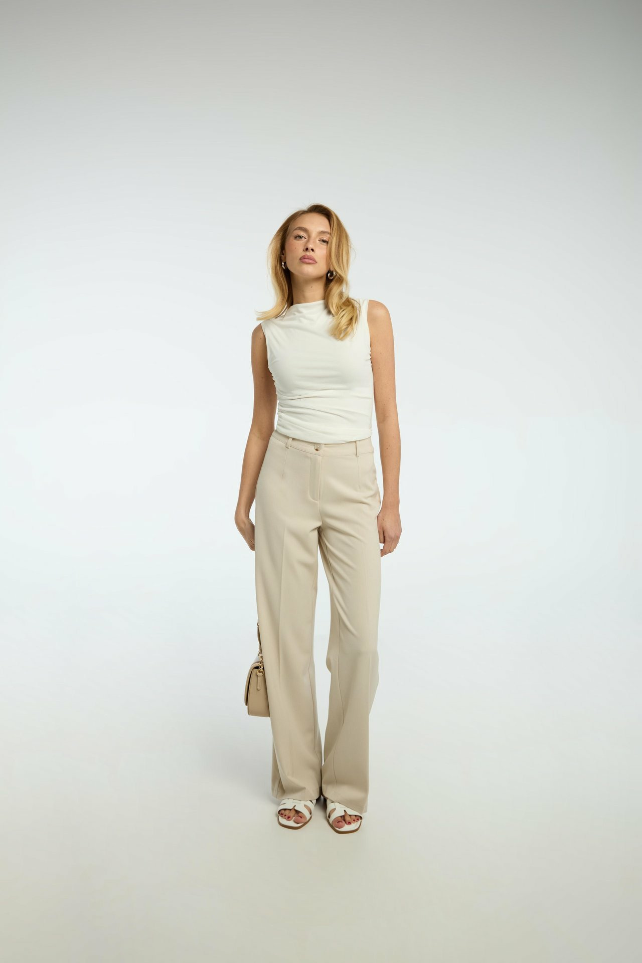 Disponible en plusieurs tailles, il présente une coupe droite avec une taille ajustée et une fermeture classique à boutons et zip. Le tissu est léger, parfait pour toutes les saisons.