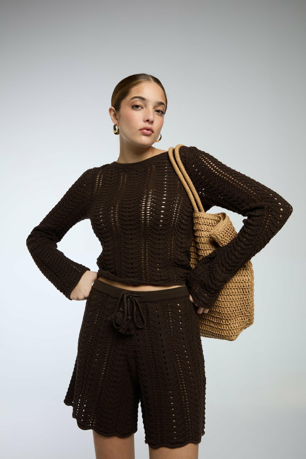 Confectionné avec soin, ce pull en crochet offre une silhouette aérienne et une sensation de douceur au toucher. Sa maille ajourée laisse respirer la peau tout en apportant une dimension graphique à votre look. Facile à associer, il s’adapte parfaitement aux jeans, jupes ou pantalons fluides pour un rendu moderne et féminin.