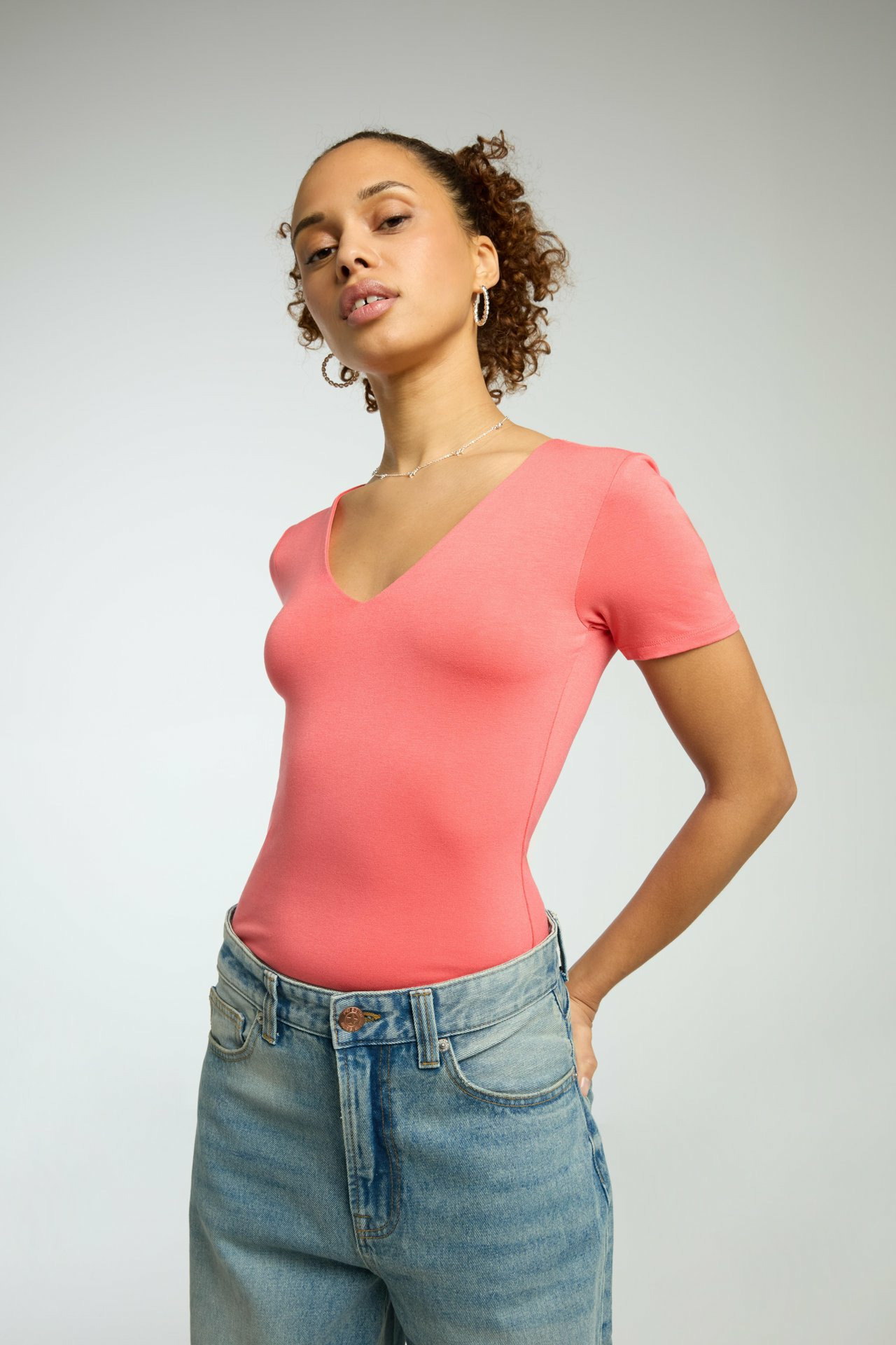 Le col en V est-il profond ? Le col est modérément plongeant, conçu pour un équilibre parfait entre élégance et discrétion.