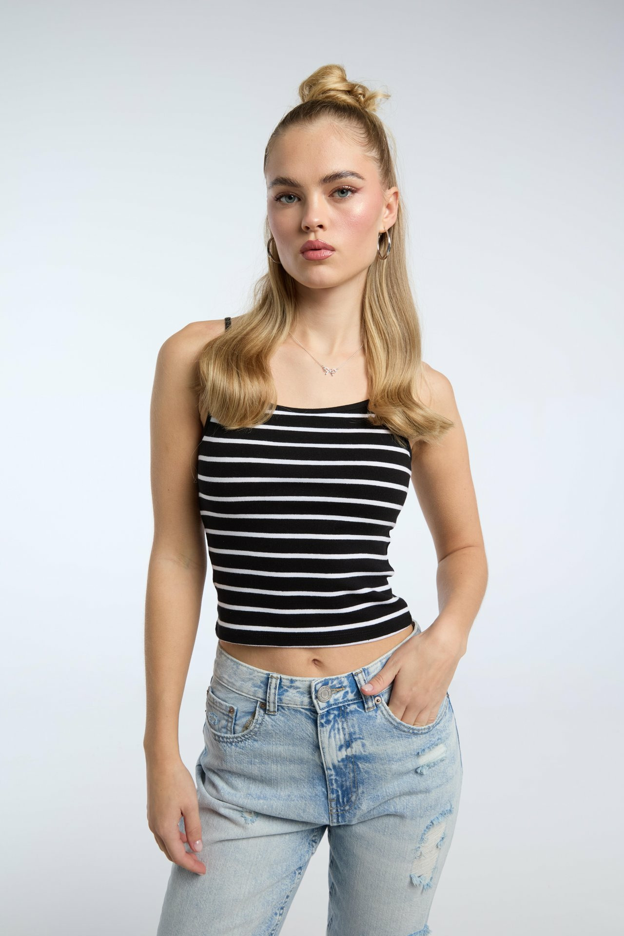 Affichez votre style avec ce top court New Yorker, l’essence même de la tendance urbaine et décontractée. Une pièce incontournable pour dynamiser vos looks estivaux ou vos superpositions modernes.
