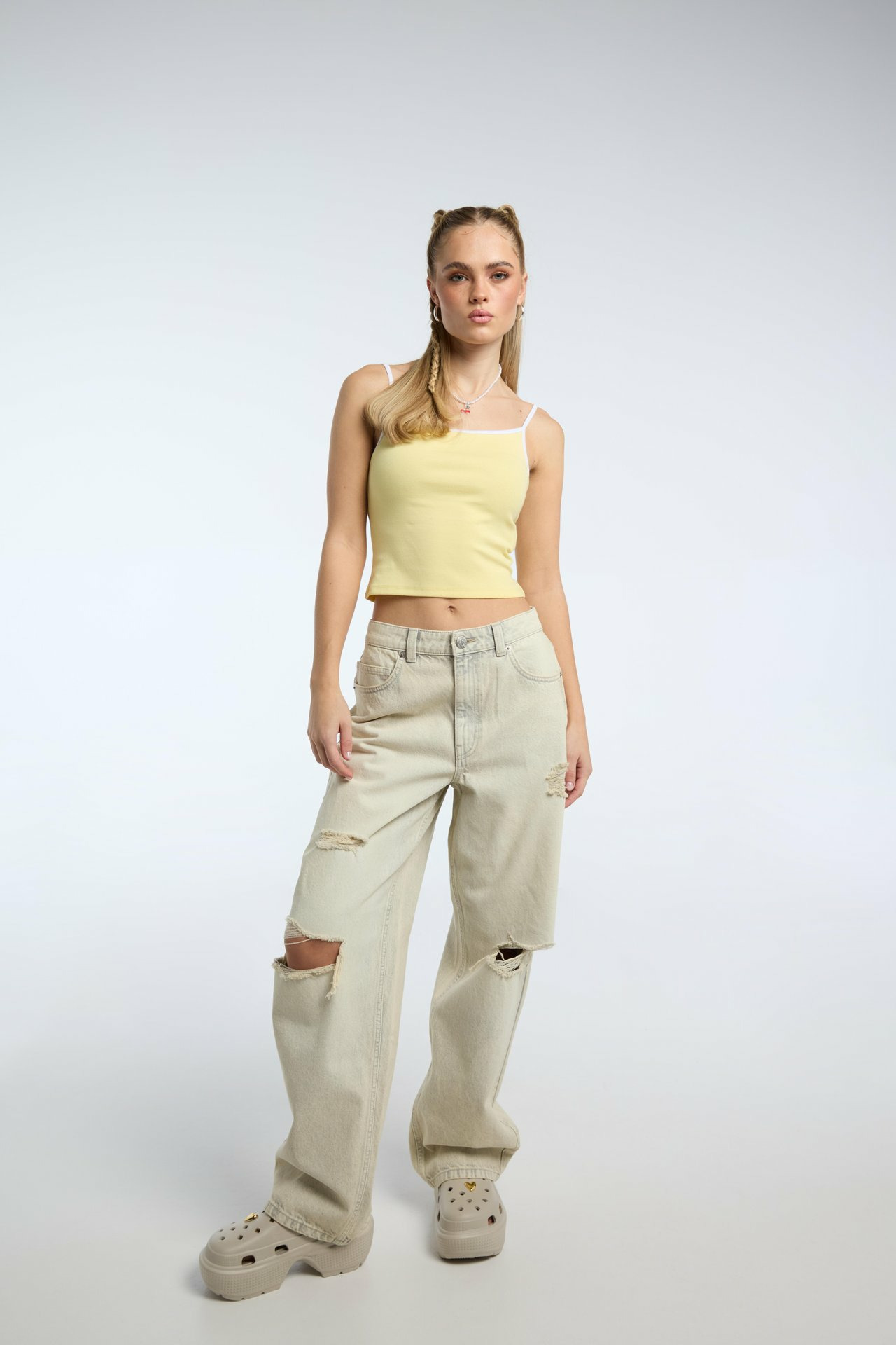 Profitez d’un confort optimal grâce à sa matière légère qui respire, parfaite pour rester fraîche sans compromis sur le style. Ce top court est votre allié pour créer des tenues polyvalentes, du casual chic au streetwear affirmé.
