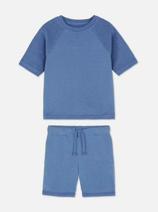 Le t-shirt à manches courtes propose une coupe adaptée aux mouvements, tandis que le short à cordon de serrage assure un ajustement personnalisé et sécurisé. Cet ensemble léger et respirant est idéal pour les journées actives, que ce soit pour jouer au parc ou se détendre à la maison. Son design simple et moderne s’intègre facilement à toutes les tenues.