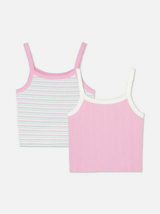 Offrez à votre petite fille un style frais et confortable avec ces deux débardeurs côtelés signés Primark. Parfaits pour les journées actives, ils allient simplicité et détails soignés.