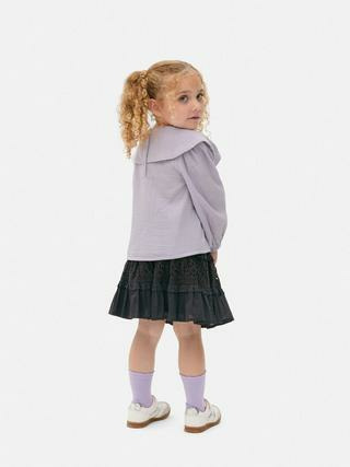 Disponible en tailles 1,5 à 8 ans, ce chemisier est un essentiel du dressing enfant. Il se compose d’un double tissu léger, doté de manches longues élastiquées et d’une fermeture à bouton au dos pour un enfilage simple et sécurisé.