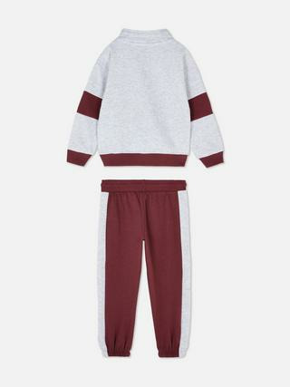 Ensemble composé d’un sweat-shirt à col cheminée et d’un pantalon de jogging resserré aux chevilles. Disponible en tailles 1,5 à 8 ans. Color block offrant un contraste visuel moderne. Marque Primark, gage de qualité accessible.