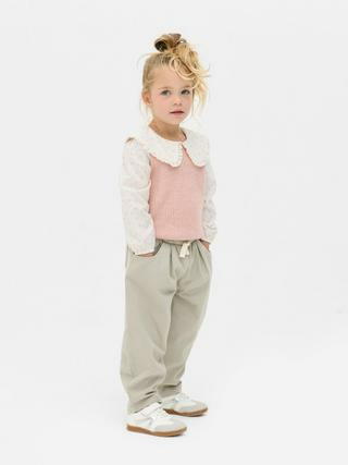 Disponible pour les filles de 1,5 à 8 ans, ce pantalon est conçu dans une matière douce et résistante, facile à entretenir. Le cordon de serrage à la taille garantit un maintien ajustable, tandis que la coupe ballon apporte volume et légèreté à la silhouette.