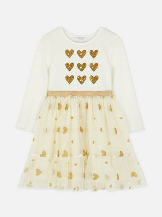 Offrez à votre petite fille une touche de magie avec cette robe tutu à manches longues ornée de cœurs en sequins. Un équilibre parfait entre élégance et confort pour toutes ses occasions spéciales.