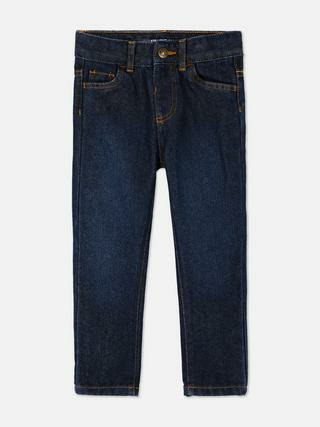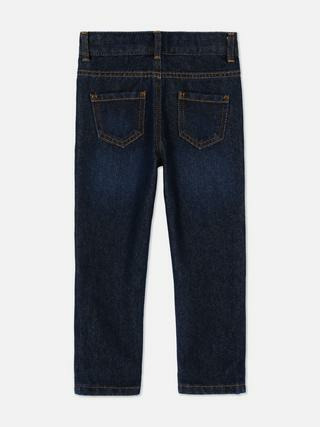 Jean droit à fermeture par bouton-pression, doté de passants de ceinture et de poches avant et arrière. Disponible en tailles adaptées aux enfants de 18 mois à 7 ans. Matière robuste pour un usage intensif.