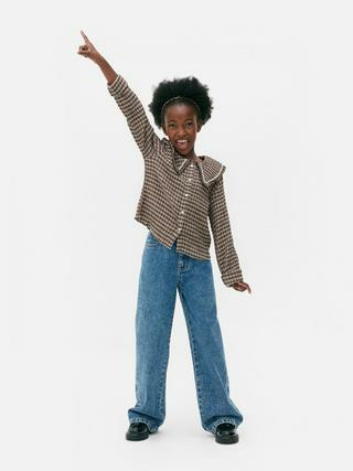 Fabriqué par Primark, ce modèle propose un col Claudine, des manches longues, un imprimé vichy classique mêlé à un motif zigzag, un ruban serpentine décoratif et une fermeture boutonnée sur le devant. Disponible en plusieurs tailles adaptées aux filles de 7 à 15 ans.