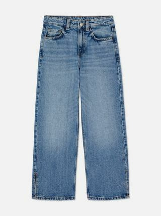 Jean large à braguette zippée et fermeture boutonnée, équipé de passants de ceinture et de poches avant et arrière. Disponible en tailles adaptées aux filles de 7 à 15 ans. Marque : Primark.