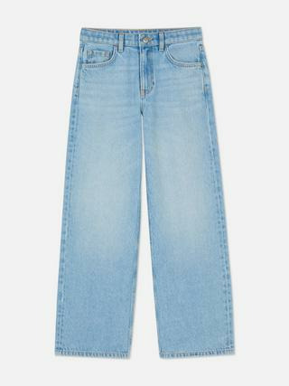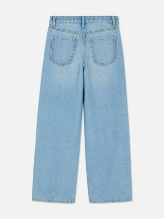 Jean large à braguette zippée et fermeture boutonnée, équipé de passants de ceinture et de poches avant et arrière. Disponible en tailles adaptées aux filles de 7 à 15 ans. Marque : Primark.
