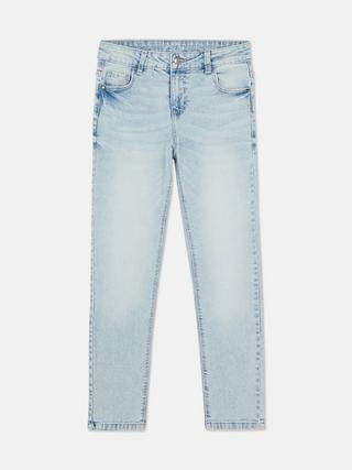Jean slim à braguette zippée et fermeture boutonnée, équipé de passants de ceinture et de poches avant et arrière. Disponible en tailles pour enfants de 7 à 15 ans. Marque Primark.