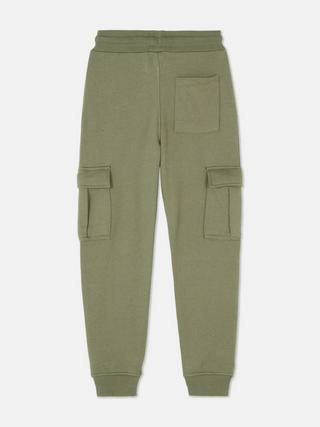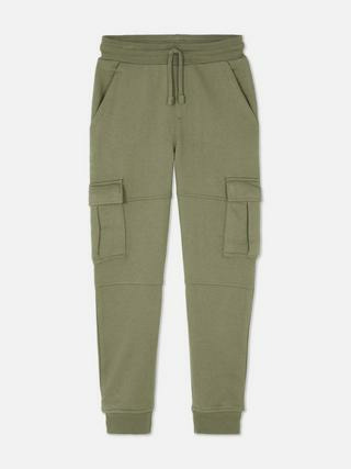 Bas de jogging cargo pour garçon, resserré aux chevilles, cordon de serrage à la taille, poches latérales et empiècements décoratifs. Marque Primark.