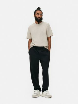 Fabriqué en tissu heavyweight, ce bas présente une coupe droite et une taille élastiquée. Il est disponible sous la marque Primark, reconnue pour ses vêtements accessibles et de qualité.