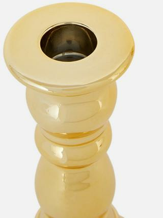 Dimensions et matériaux : bougeoir en métal au fini doré, forme classique, adapté aux bougies standard. Léger et robuste, il assure une bonne stabilité.