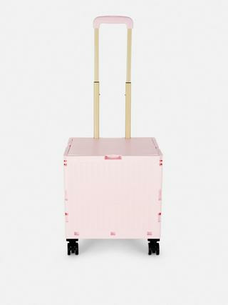 Simplifie ton organisation avec la caisse pliable à roulettes Primark, conçue pour te suivre partout sans effort. Son design ingénieux allie praticité et mobilité pour un transport fluide de tes affaires.