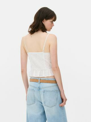 Ce caraco est conçu dans un tissu doux et respirant, avec des œillets métalliques solides et un ourlet à volants soigneusement fini pour une tenue impeccable. Disponible dans la gamme Hauts et t-shirts de la marque Primark.