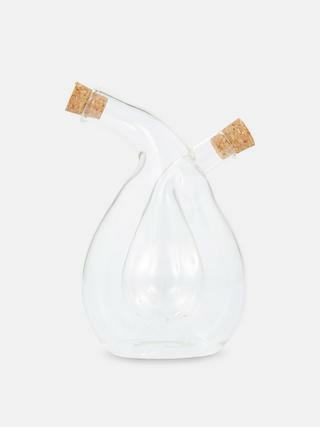 Fabriquée par Primark, cette carafe à huile double est conçue en verre transparent avec un bouchon verseur précis pour un dosage optimal. Sa capacité permet de contenir deux huiles ou vinaigres distincts, idéale pour un usage quotidien ou lors de repas entre amis.