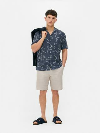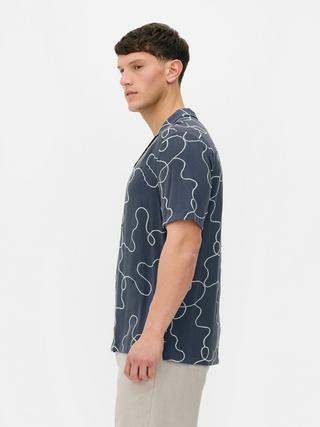 Fabriquée par Primark, cette chemise se compose d’un tissu doux et résistant, avec une fermeture boutonnée classique et des manches courtes adaptées aux températures élevées. Son imprimé tourbillons floqués couvre intégralement le vêtement pour un effet visuel marqué.