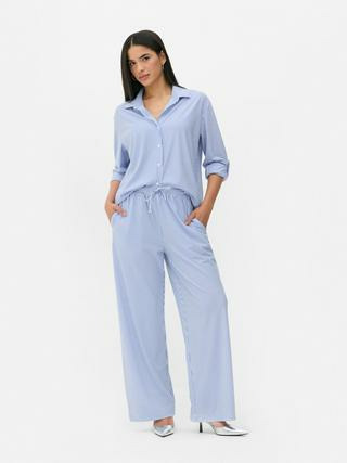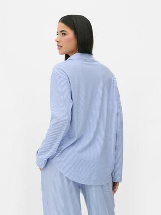 Cette chemise oversize est fabriquée en jersey léger à rayures intégrales, dotée d’un col classique et d’une fermeture boutonnée sur le devant. Elle appartient à la collection chemises et blouses de la marque Primark.