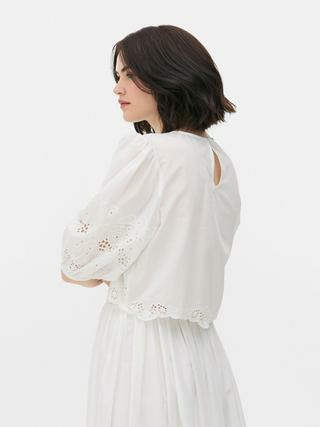 Comment entretenir ce chemisier ? Il est recommandé de le laver en machine à basse température et de le repasser à fer doux pour préserver les détails ajourés.