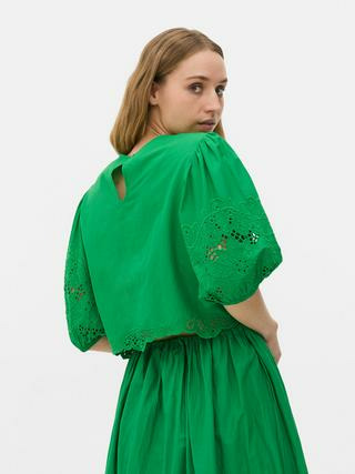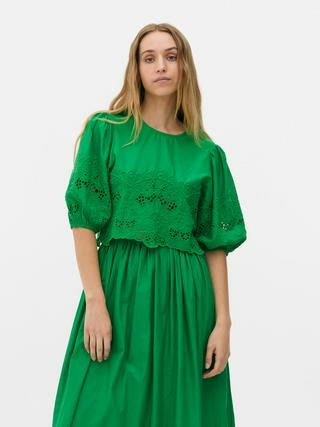 Conçu pour sublimer toutes les silhouettes, ce chemisier Primark se distingue par ses manches bouffantes qui apportent du volume et du caractère à votre tenue. Les détails ajourés délicats offrent une respiration visuelle, rendant cette blouse légère et idéale pour les journées où style rime avec confort. Portez-le en journée avec un jean ou en soirée avec une jupe pour un look affirmé.