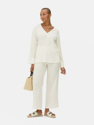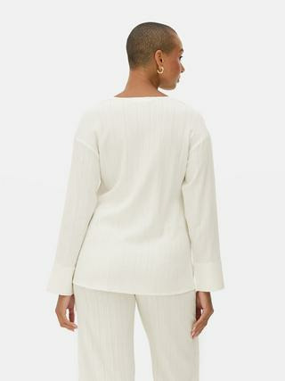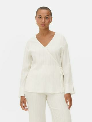 Fabriqué par Primark, ce chemisier est disponible dans la catégorie Chemises et blouses. Il présente une coupe décontractée, un tissu texturé froissé, un côté à nouer et des manches longues, garantissant une pièce polyvalente et confortable.