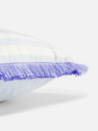 Confectionné en tissu d’ameublement de qualité, ce coussin mesure environ 40x40 cm. Sa housse est conçue pour durer, avec des finitions soignées et des franges bien définies qui ne se déforment pas avec le temps.