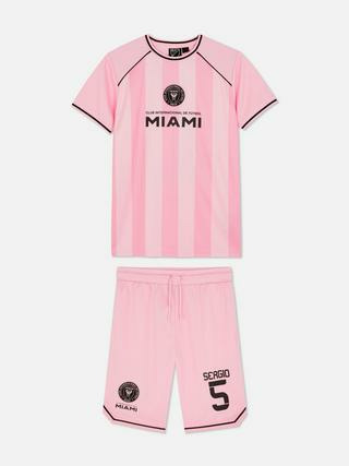 Pensé pour accompagner chaque mouvement, cet ensemble Primark offre une coupe moderne et une matière légère qui respire. Le maillot arbore le logo emblématique d’Inter Miami CF, tandis que le short garantit une tenue stable grâce à son cordon de serrage. Idéal pour les entraînements, les sorties ou les moments de détente, il incarne l’esprit du club avec authenticité.
