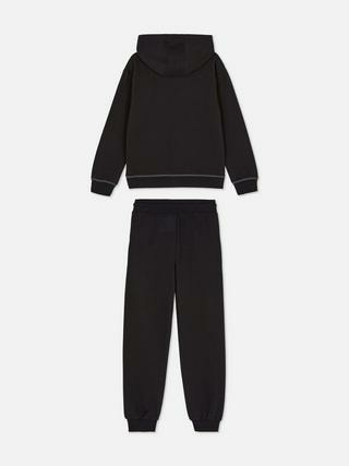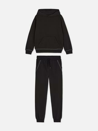 Ensemble composé d’un sweat à capuche avec bords côtelés et d’un bas de jogging doté d’un cordon de serrage aux chevilles resserrées. Disponible dans les tailles garçon. Marque : Primark.