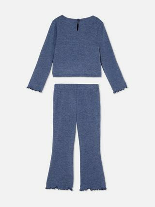 Le t-shirt est à manches longues avec des détails en nœuds sur le devant. Le legging présente une coupe évasée à partir du genou, offrant une allure actuelle et un confort accru. Disponible dans les tailles enfants, cet ensemble est signé Primark, gage de qualité et de style accessible.