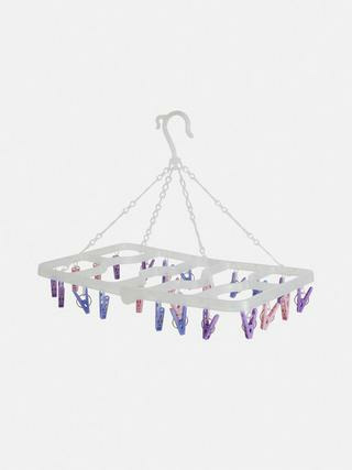 Fabriqué par Primark, cet étendoir à suspendre combine robustesse et légèreté. Son design pliable facilite le rangement et le transport, idéal pour les appartements, les voyages ou les lessives rapides. Les 24 pinces intégrées maintiennent fermement chaussettes, sous-vêtements et autres petits textiles sans les abîmer.