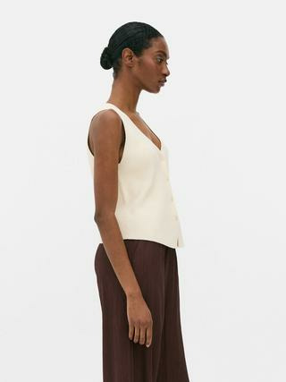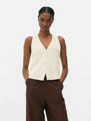 Fabriqué en maille côtelée, il présente un col en V classique et un devant boutonné pour un maintien optimal. Disponible dans la gamme Hauts et t-shirts de la marque Primark, il combine qualité et style accessible.
