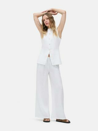 Adoptez l’élégance décontractée avec ce gilet de costume en lin The Edit signé Primark. Une pièce légère et moderne qui sublime votre silhouette avec simplicité.