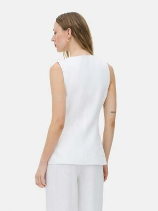 Ce gilet vous offre une alternative respirante aux blazers traditionnels, parfaite pour les saisons chaudes. Sa coupe ajustée valorise la silhouette et facilite les mouvements, pour un maintien impeccable sans contrainte.