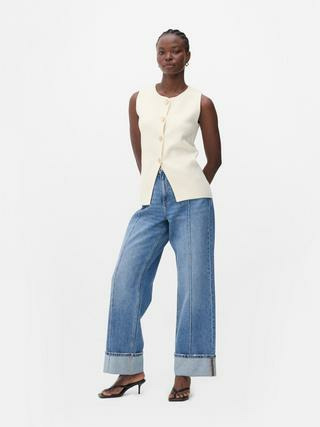 Fabriqué par Primark, ce gilet sans manches est en maille fine, doté d’un col rond et fermé par une rangée de boutons dorés. Sa coupe ajustée garantit un maintien optimal et un style contemporain.